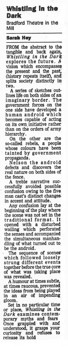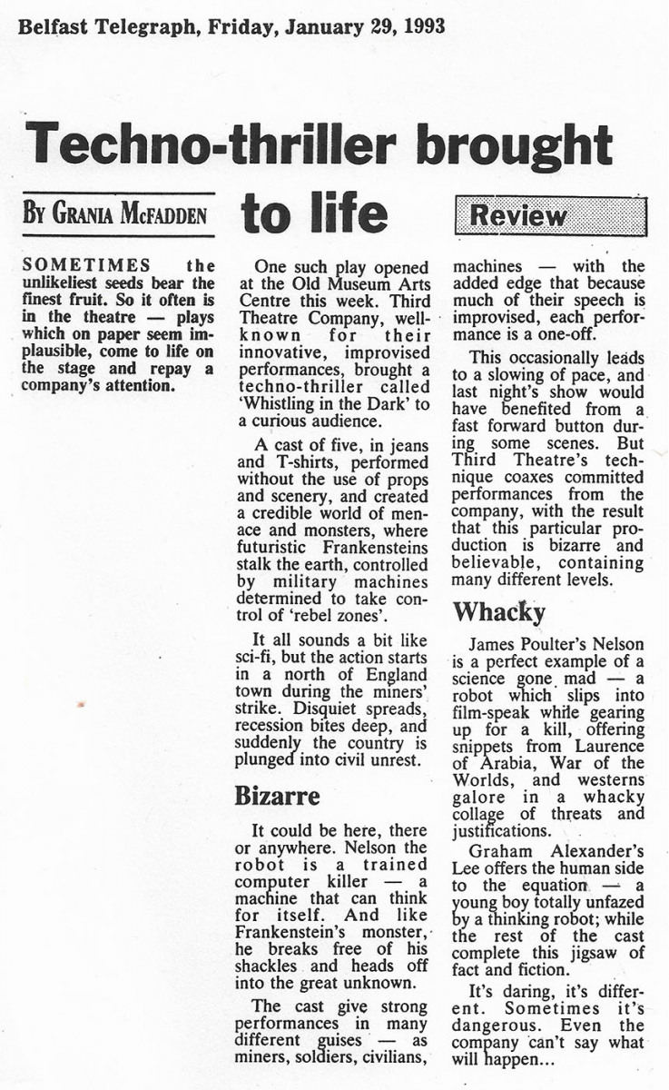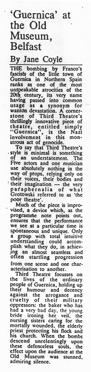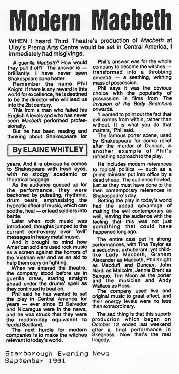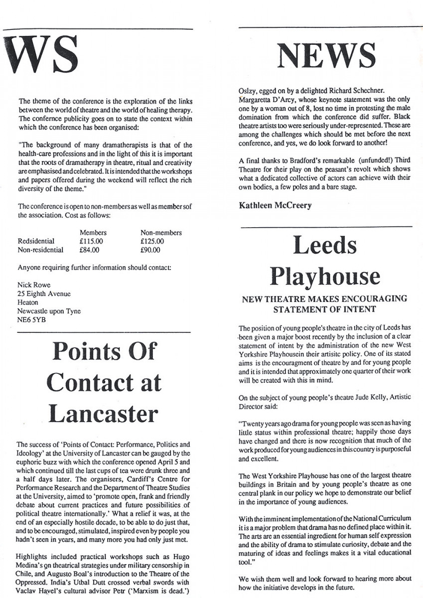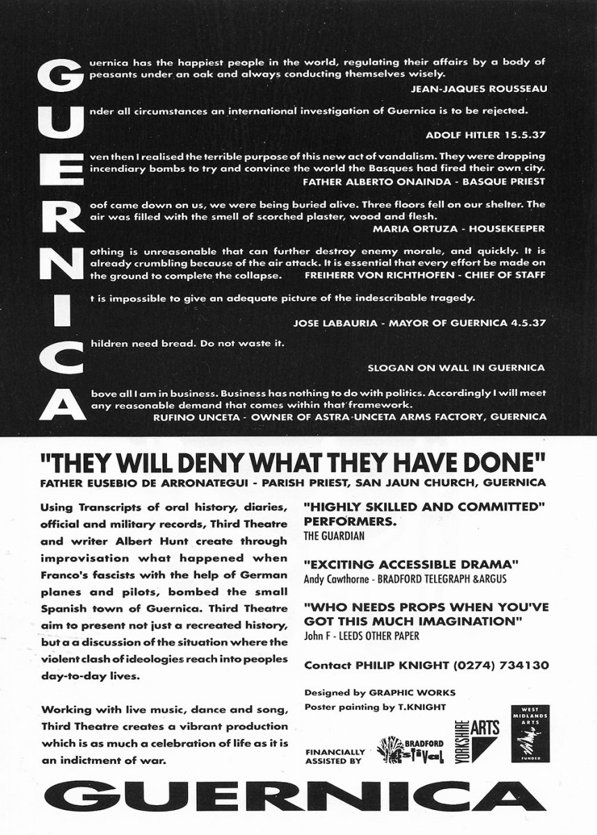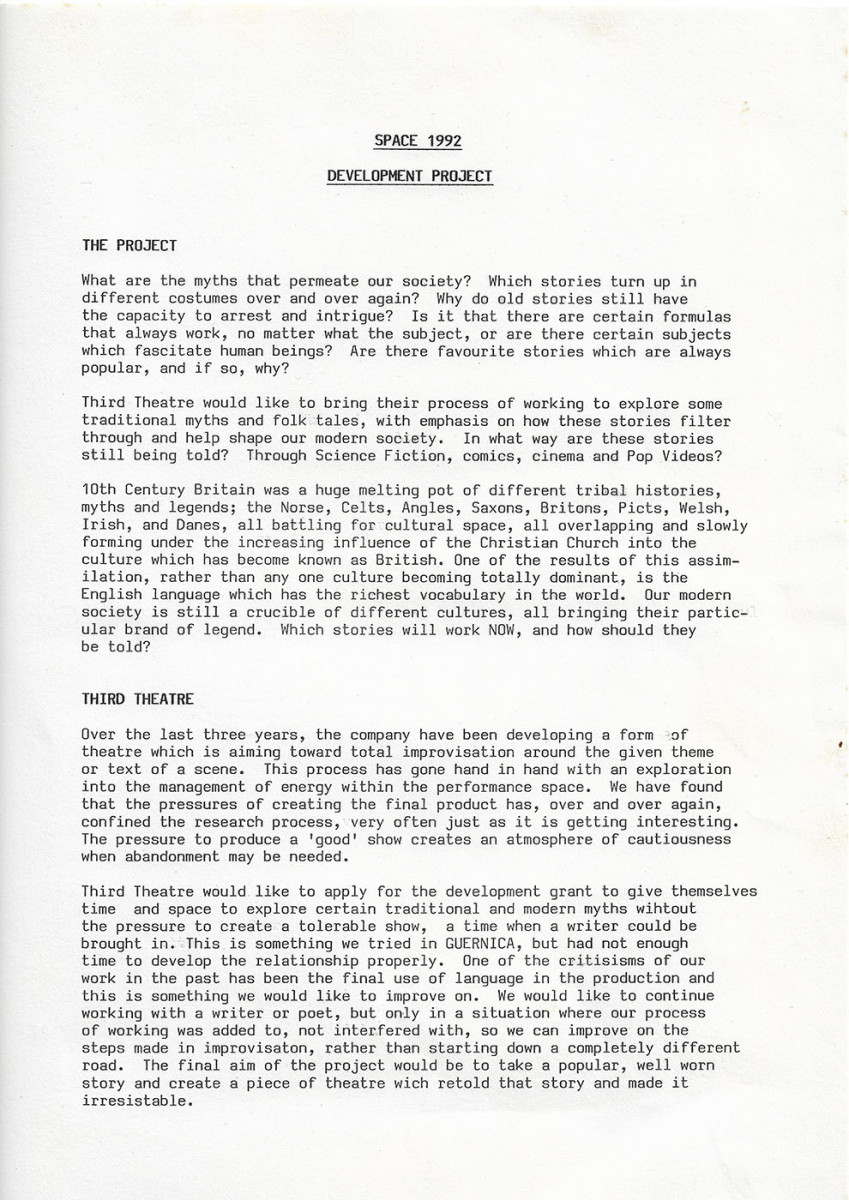 This was the first Third Theatre production and charts the rise and fall of the English Peasant’s Revolt of 1381. The project was instigated by Artistic Director, Philip Knight, and musician, Michael Gosling, to develop a company that trained physically and vocally to create devised productions. Continue reading “Man of Straw – The story of the 1381 Peasants Revolt”